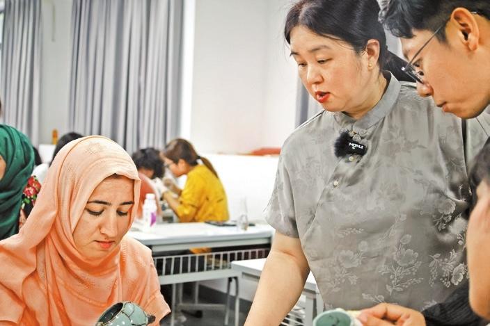 Students work on a kintsugi item at Shenzhen University on Sunday. Photos by Li Dan